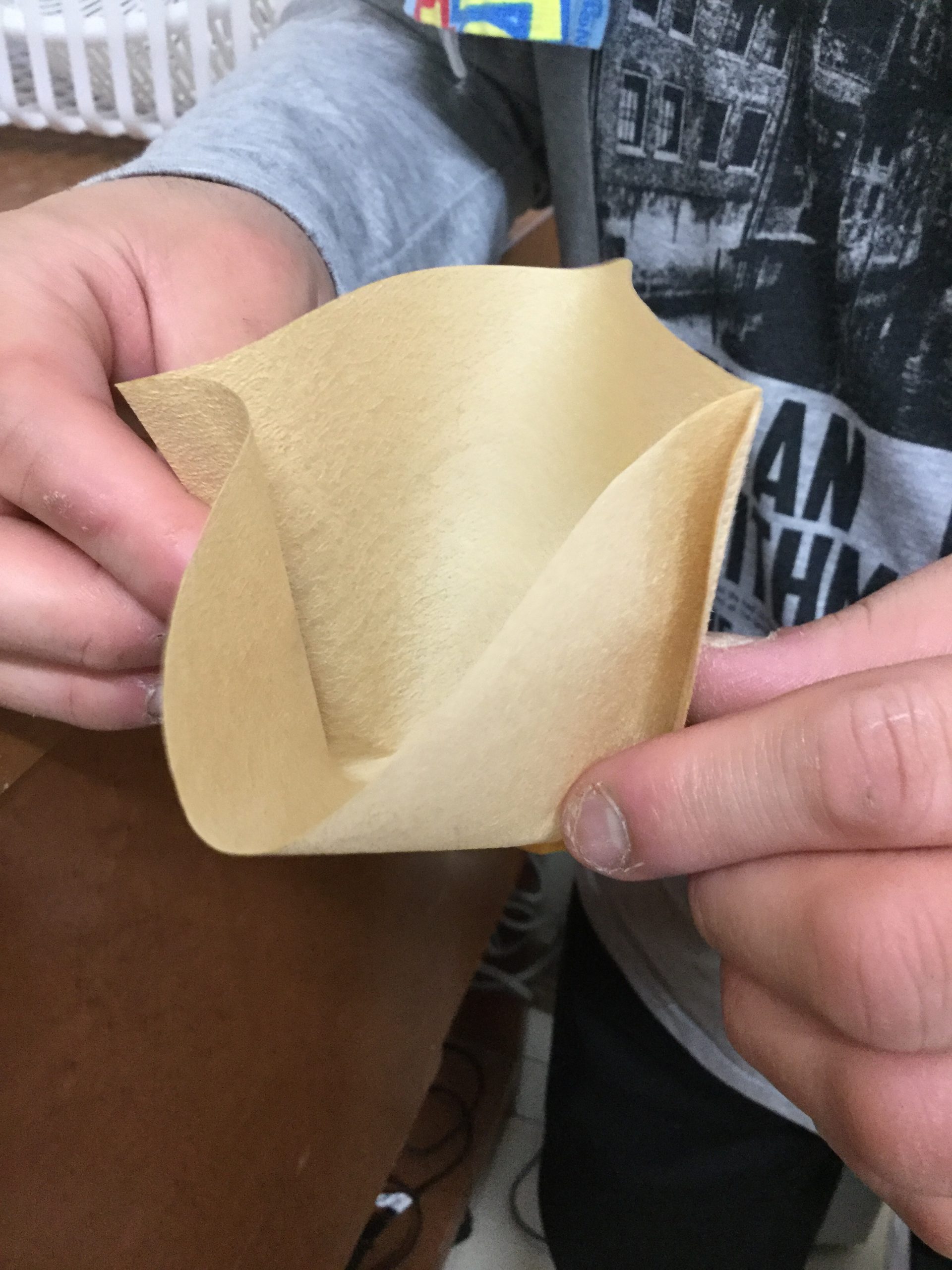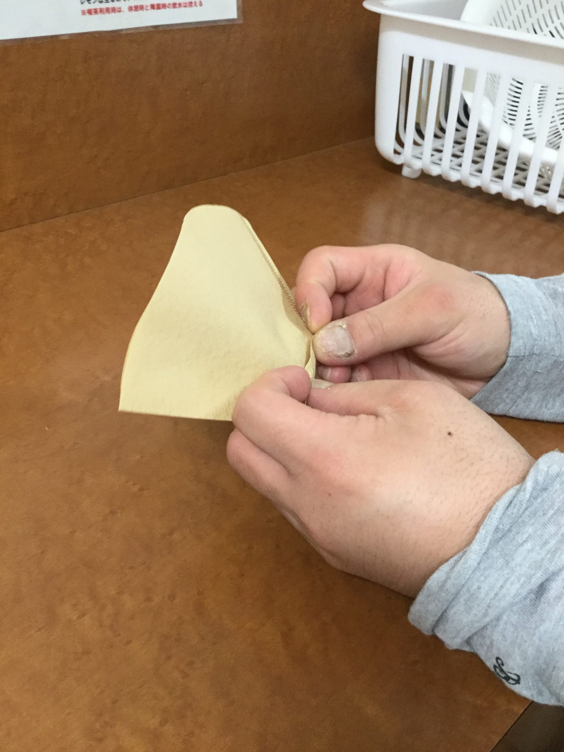 コーヒーフィルターを2回折るのに、丁寧に時間かけて折ってくれます。
