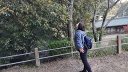 大好きなキンモクセイを発見しここぞとばかりに香りを嗅ぐ妻。