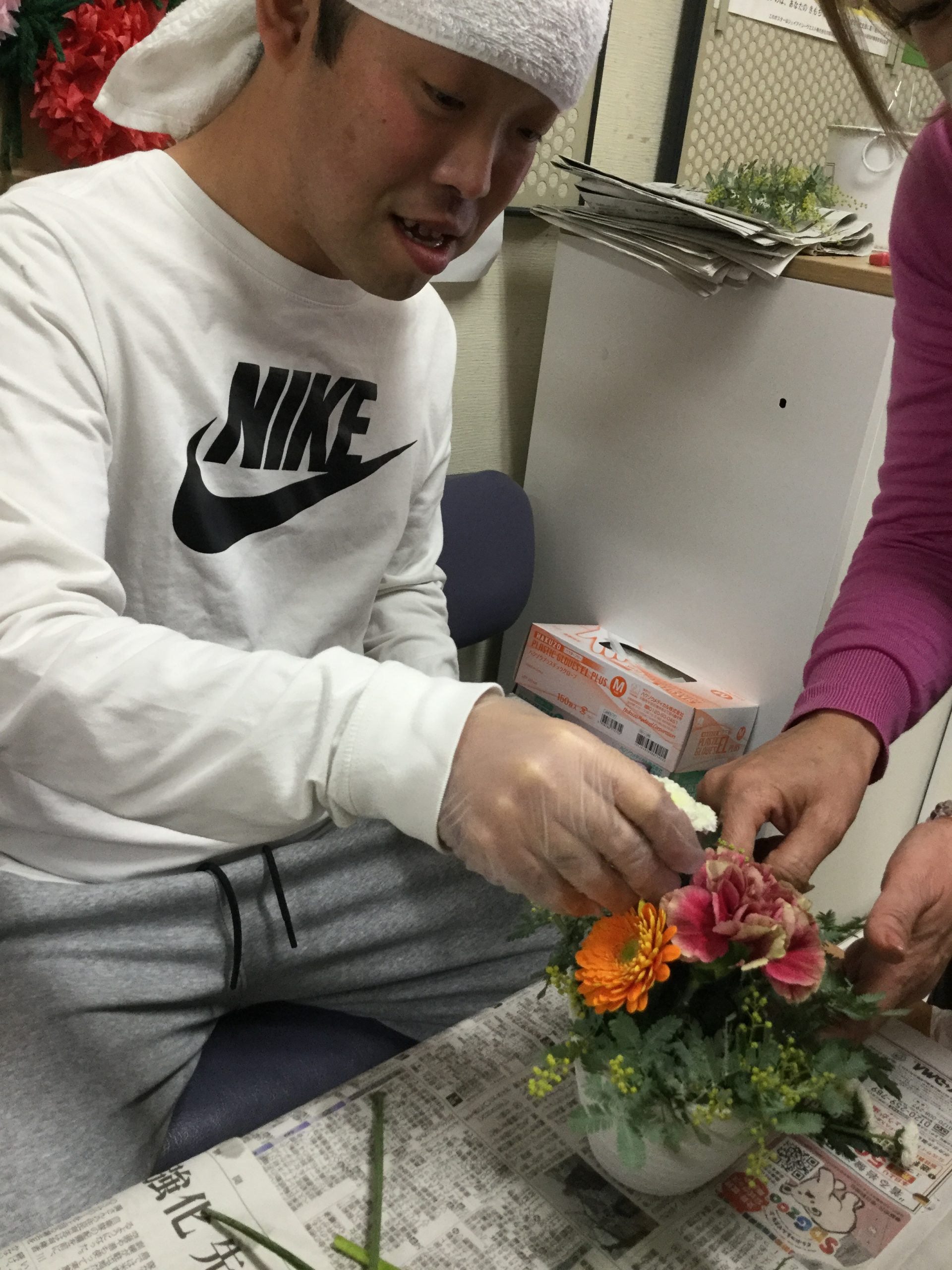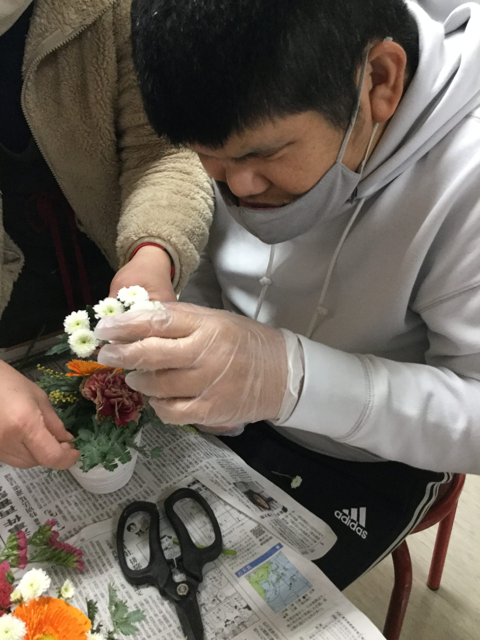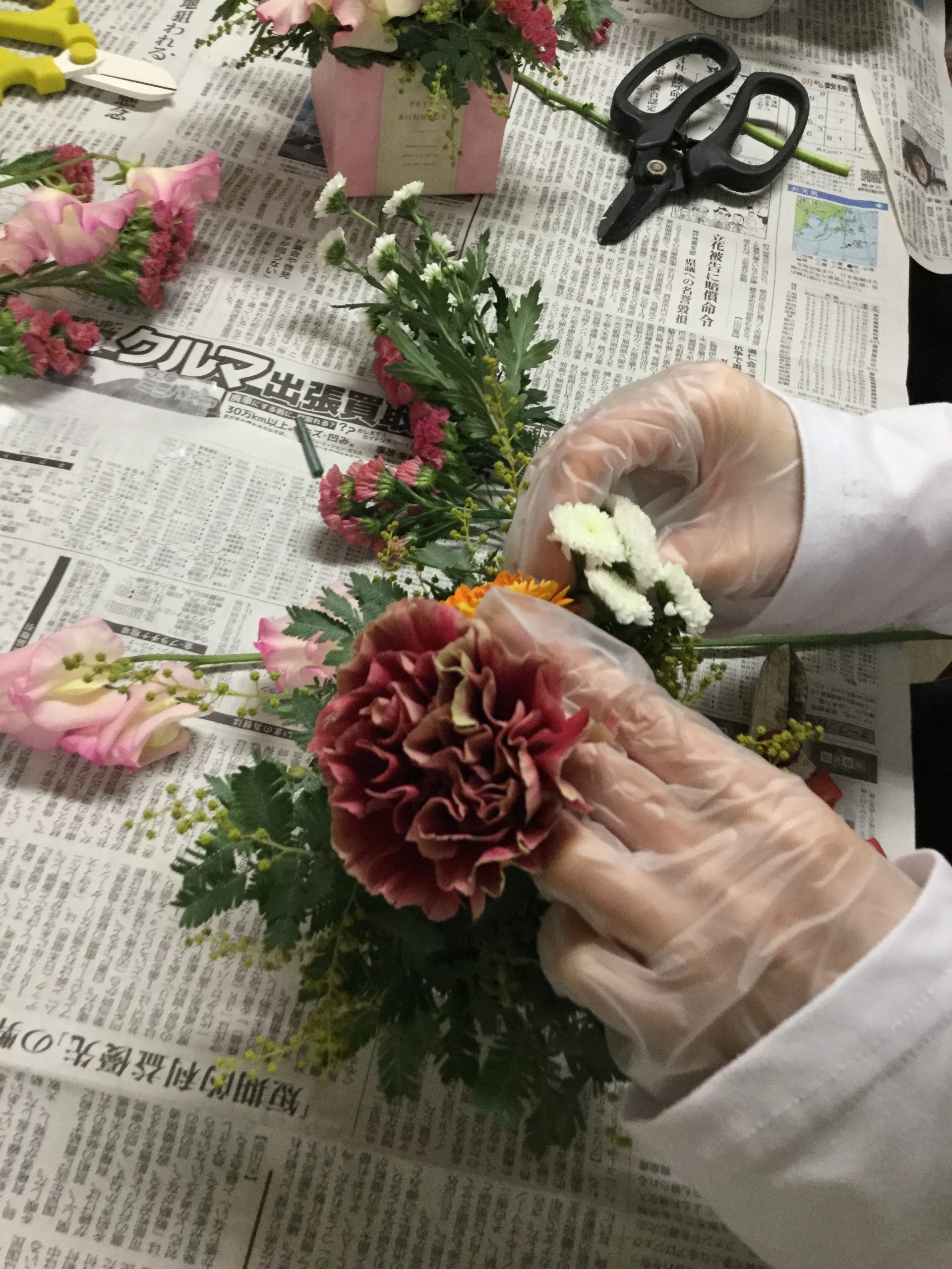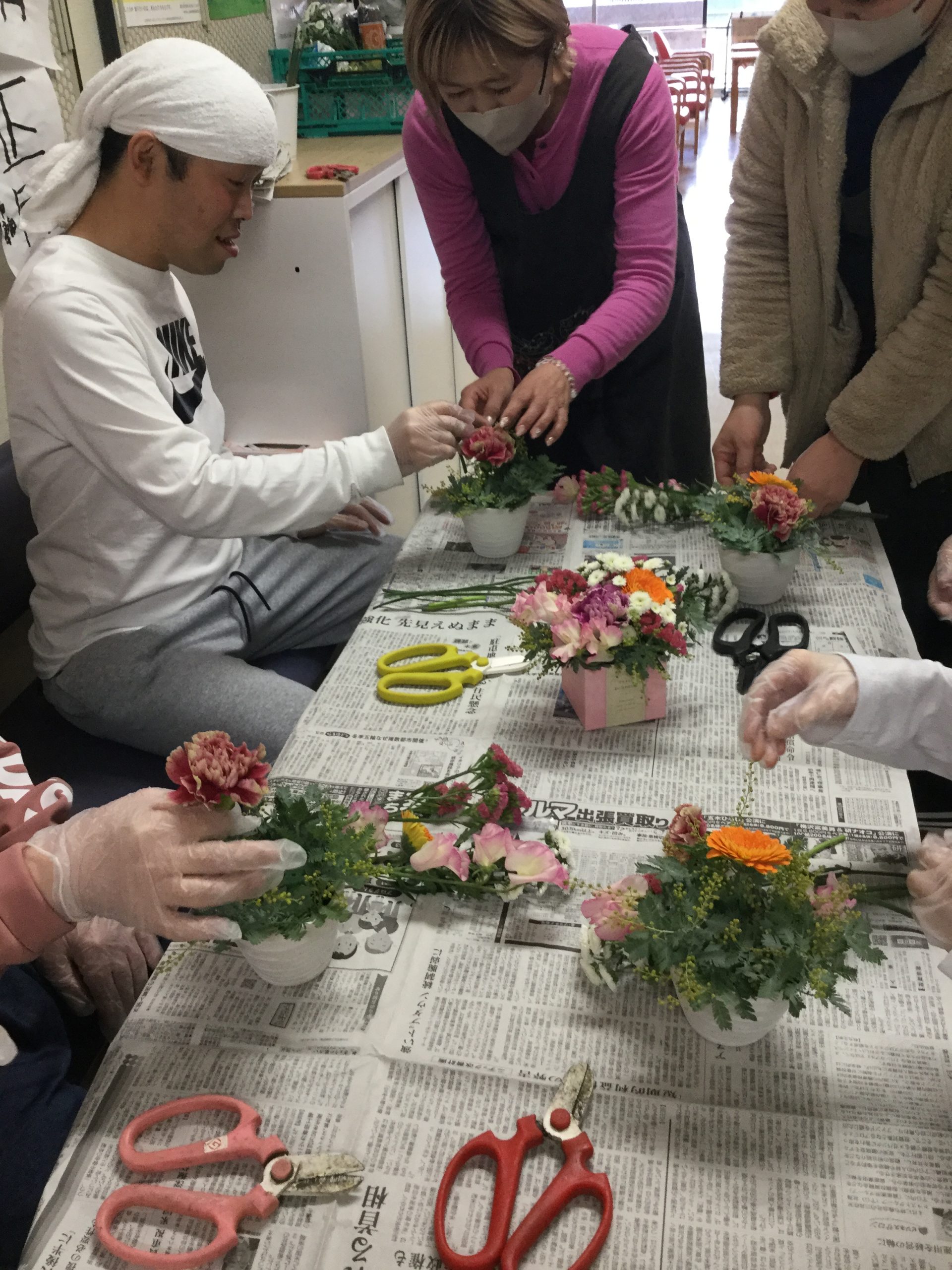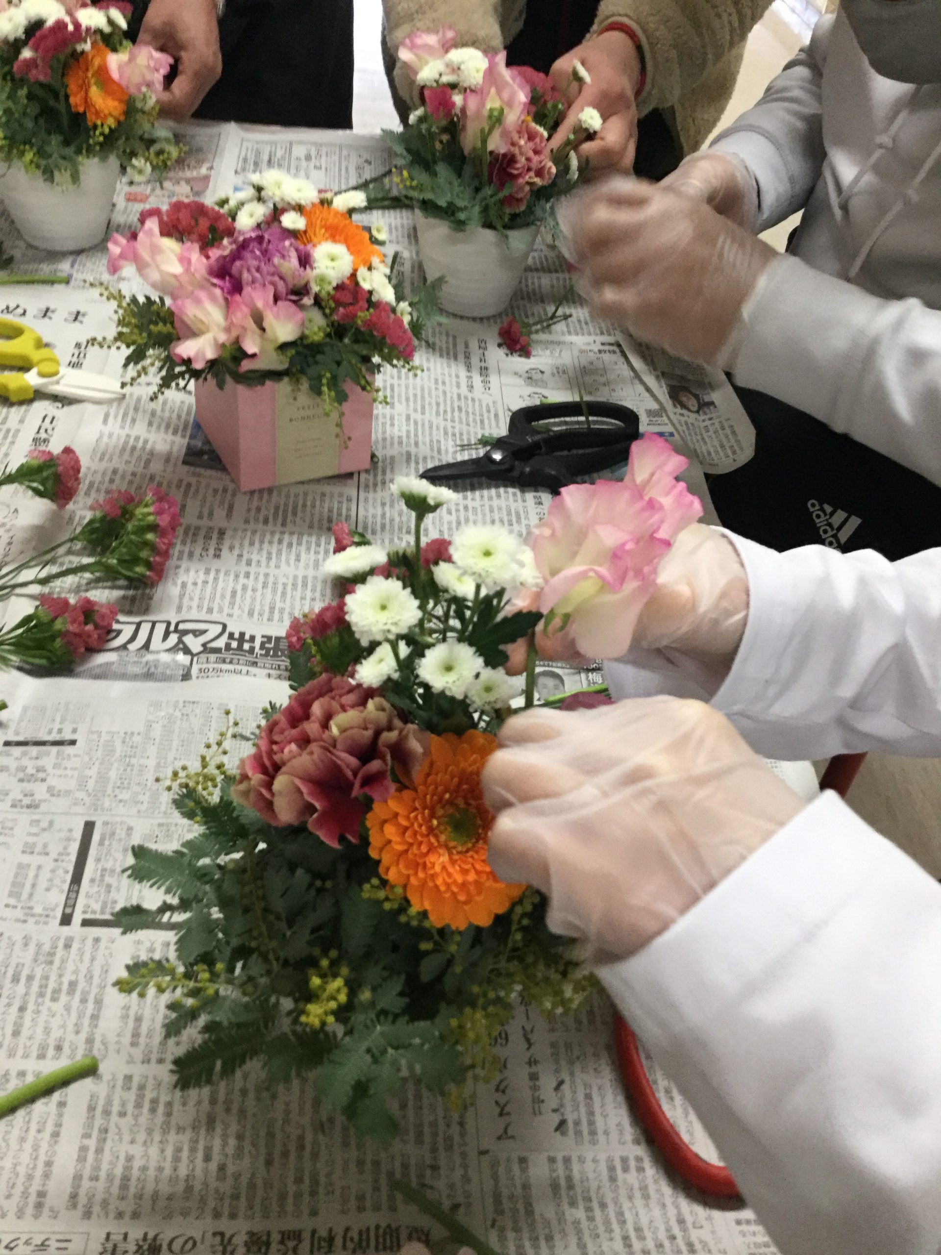 お花屋さんの先生を呼んでフラワーアレンジメントを行いました